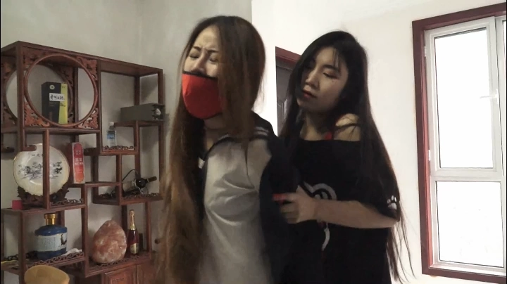 吴晗就守在韩毅家门口的楼梯处,等着韩毅回来,不一会。电梯到了,韩毅走了出来。吴晗很快从后面出来,抱住韩毅,拿出丝袜塞进韩毅的嘴里,韩毅剧烈挣扎,吴晗捆绑韩毅,直接绑成五花,然后带上口罩,披上外套。带韩毅离开了
