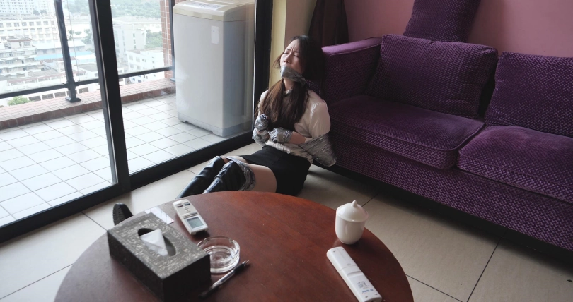 但是敲了半天没人开门,因为此时小张去上班了,而小徐此时被绑成狗一
