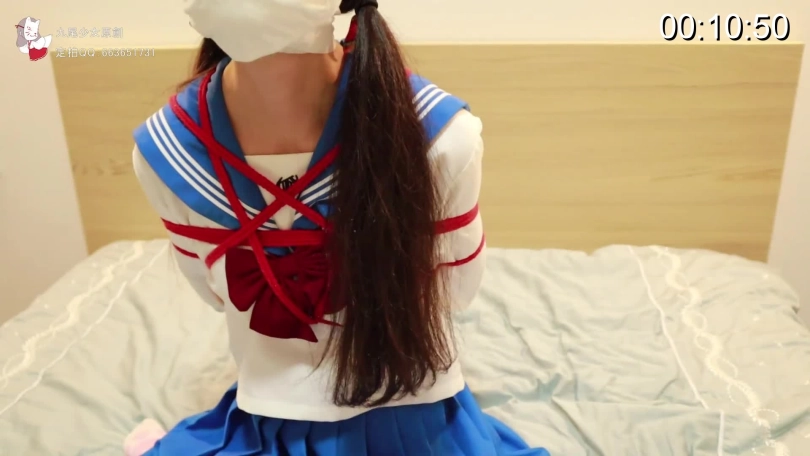 【九尾少女】白丝JK制服,丝袜堵嘴,绷带多层封嘴,口罩呼吸TJ,紧缚股绳,白丝长腿TK,强制高潮呻吟喘息