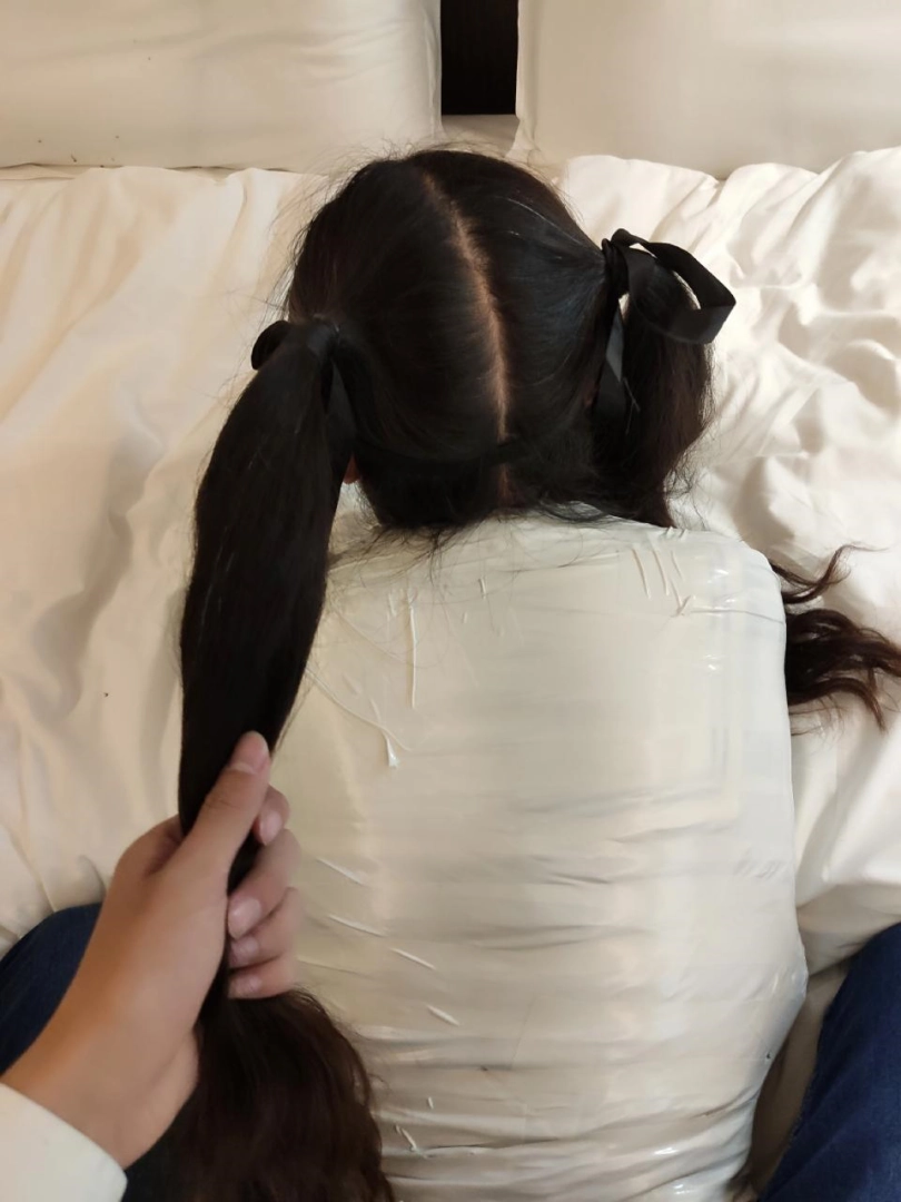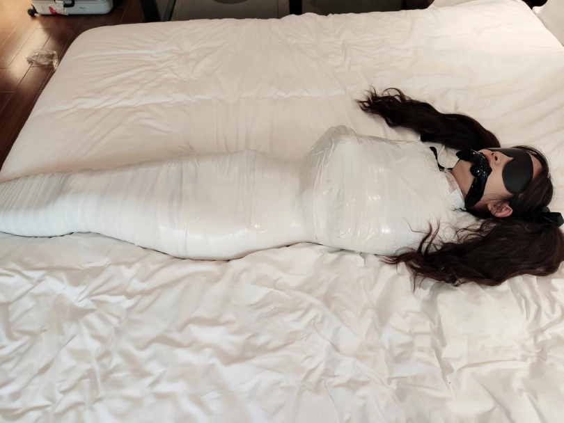在包的过程中剪开袜子挠脚心,看小妹妹忍着疼痛绝望的挣扎。玩弄过后再把小妹妹的小脚也用胶带和保鲜膜封死。把少女做成真正的人形木乃伊~
