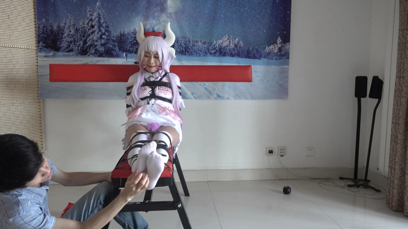 【逍遥】【cosplay TK】龙女仆康纳 白丝老虎凳,眼罩,口球,震动牙刷Tk 妹子被Tk的快哭了