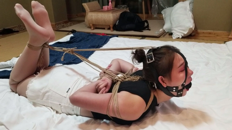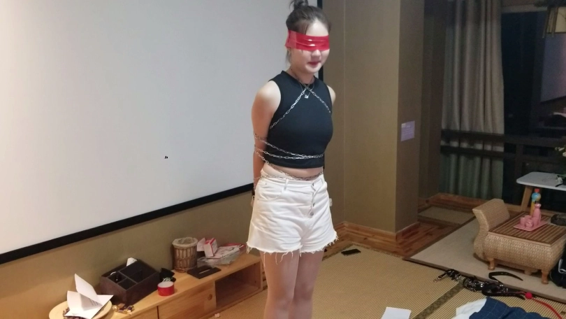 3号:束缚带若干,将挑战者上半身用束缚带捆绑。分别捆绑脚踝和膝盖。带口枷。挑战时间10分钟。