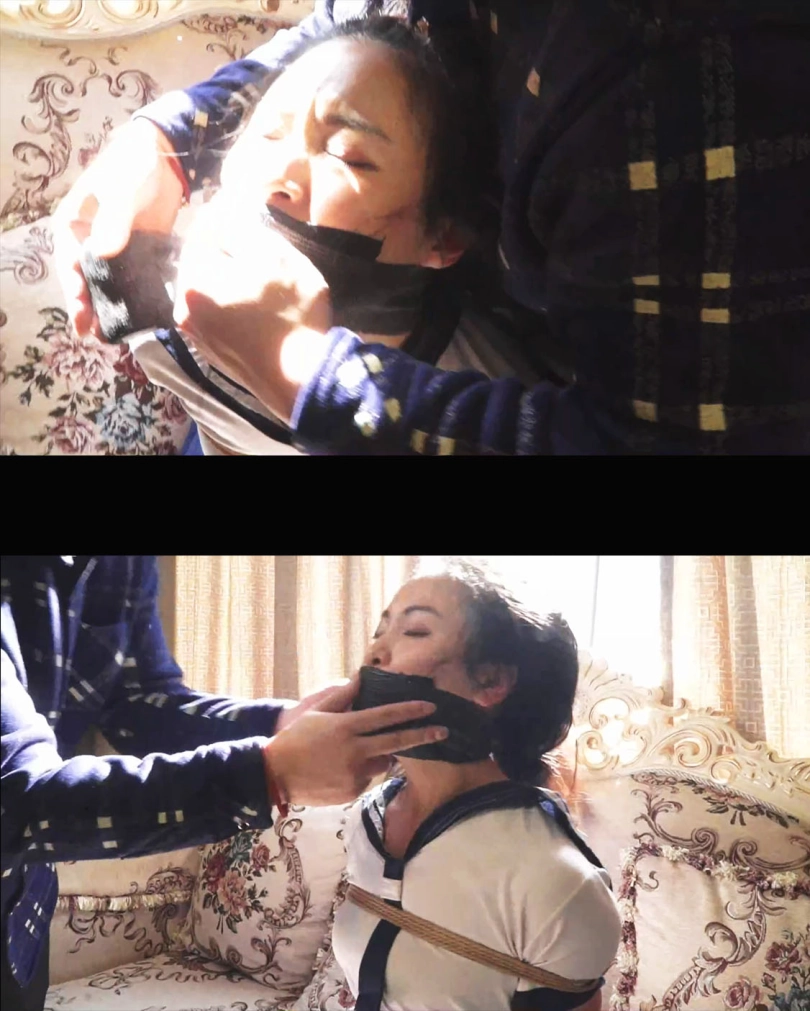 水手服美女被突然抓住,拖进了房间,美女被男人拖鞋厚棉袜套在手上,丝袜塞嘴多层胶带交错封死。白丝美女被捆绑囚禁玩弄娇躯,挠痒丝袜美脚,逃跑被发现有被长筒袜把手脚都套上,多层包裹捆绑让美女完全没有逃走的机会。
