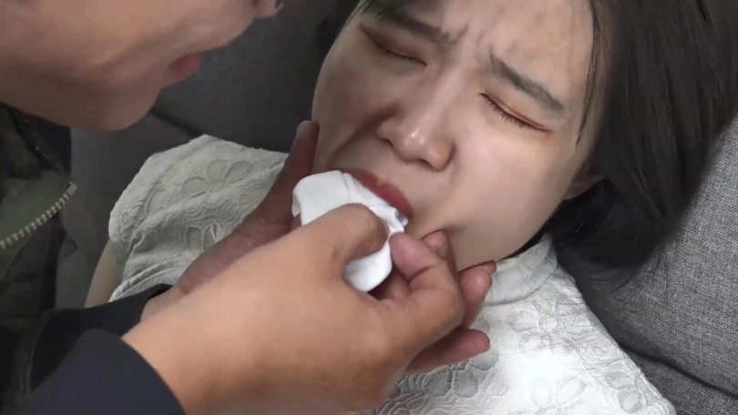 劫匪脱掉小雨表姐娅娅脚上的一双白色棉袜,分别把两只原味棉袜塞入小雨和娅娅的口中,再用黑色胶布缠绕封住二人的嘴巴。