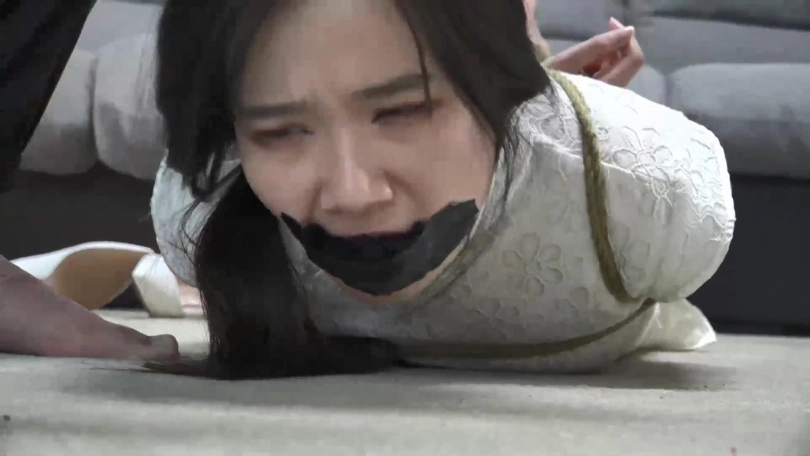 小雨嘴巴被塞入劫匪的黑色原味臭锦纶丝袜,表情痛苦,直翻白眼,劫匪随即用黑色胶带与黑色自粘绷带缠绕封住姐妹二人的嘴巴,给二女拍了几张照片,故意拿给她们看进行羞辱,最后带着抢来的财物心满意得离开。