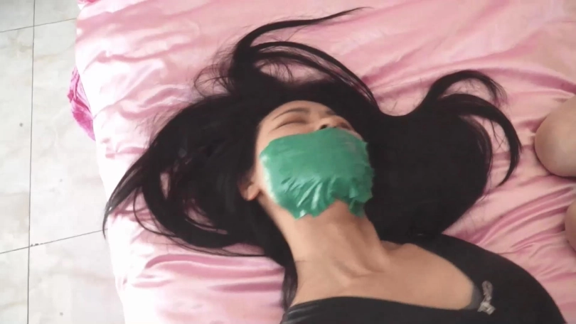 塞完后,夏炎说:“怎么样,好妹妹,味道不错吧,你嘴里有6只袜子,这叫六六大顺,还不快谢谢我?”李诺表情愤怒。夏炎从袋子里拿剪刀,剪绿色宽胶布3张,封在李诺嘴外,再用白色自粘绷带缠绕4圈。
