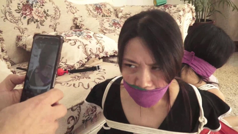 看点:白绳捆绑,逃脱未遂,背靠背双女连缚,原味连裤丝袜锦纶丝袜塞嘴,拍照羞辱,封眼。