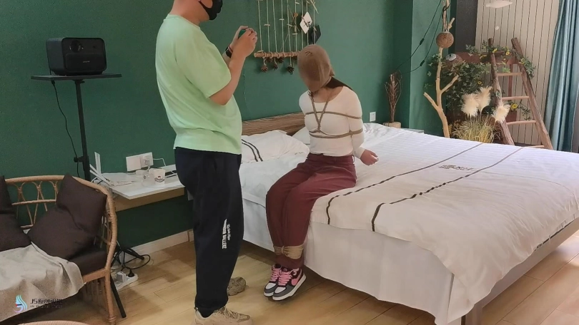 女贼进入一房间都偷东西,发现桌子上有绳子,棒棒等奇怪的物品,正当她奇怪时,她听到门外的脚步声,慌忙的藏了起来。男主回到家中,女贼想趁着男主不注意时逃出去,但被男主抓回来捆绑起来。男主是个有特殊癖好的人,他用丝袜套在女贼的头上,用胶带缠绕她的眼睛和嘴巴,用棒棒刺激着女贼,又脱下女贼的鞋子,抚摸亲吻着女贼的白棉袜脚。最后将女贼驷马捆绑在床上,下面继续用棒棒刺激,准备洗澡后回来继续TJ女贼。女贼偷窃不成,反倒成为男主的玩物。