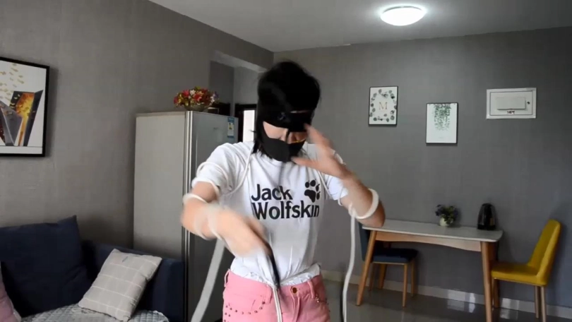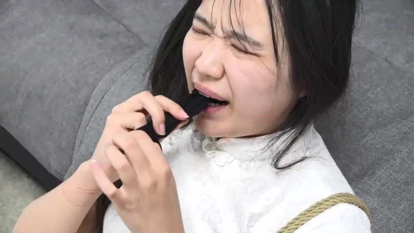 片段4:不幸遭遇雌雄大盗入室抢劫二次捆堵的美女晓璐,在黑暗中挣扎了很长时间,最终弄松绳结挣脱束缚,撕掉封眼白色绷带与黑色胶带,适应光线后给双腿脚踝捆绳解开,晓璐一点点撕开封嘴白色绷带、黑色胶带、黑色宽胶布,拽出口中由女劫匪塞入的一条自己穿过没洗的黑色脏内裤,“这两个坏蛋,我饶不了你们!”晓璐坐在地上喘着气咒骂着雌雄大盗。